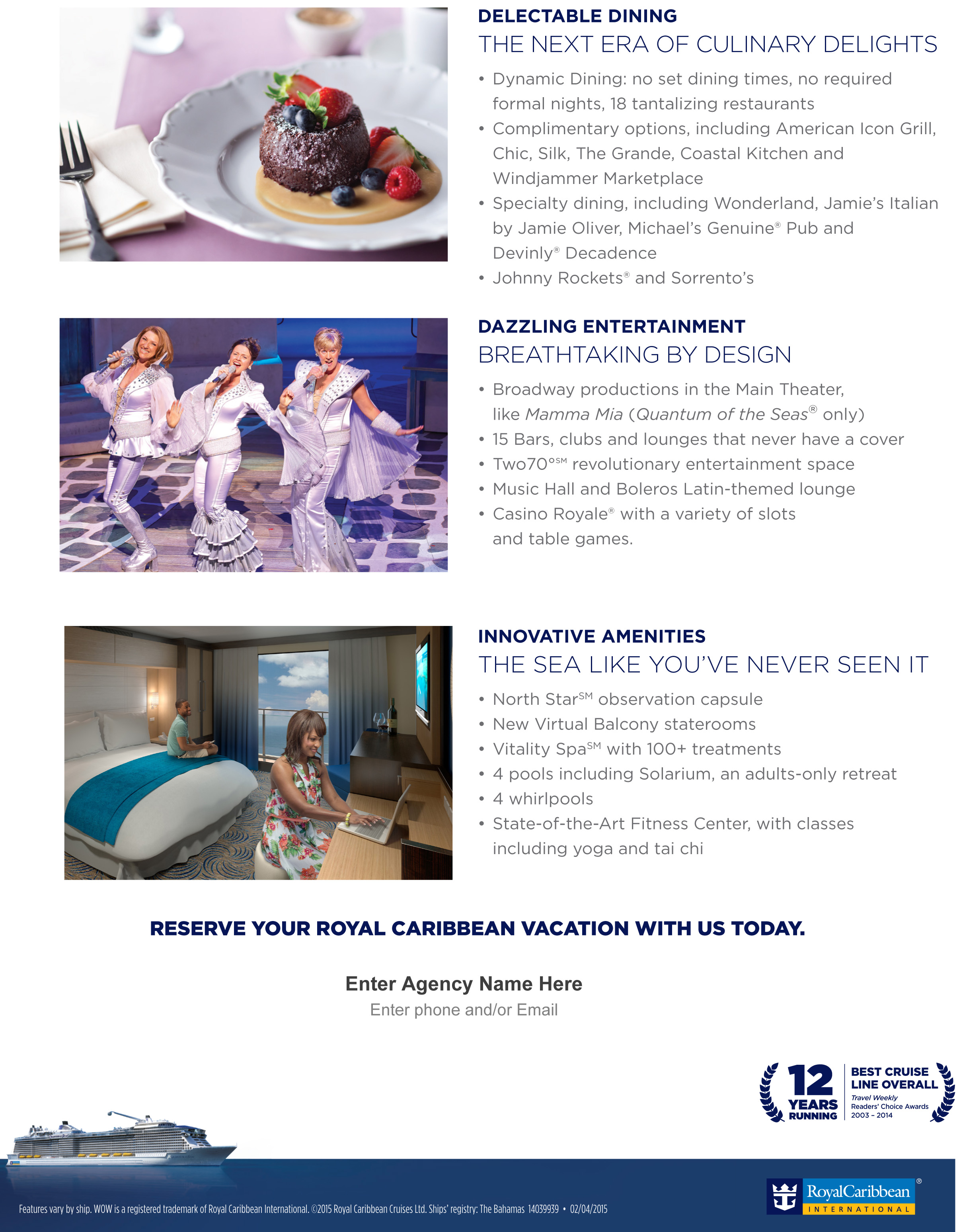 Click here to learn more about Royal Caribbean Vacations! –>RC Brochure